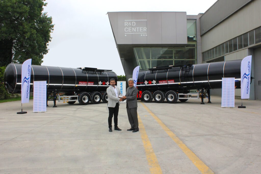 Kaçmazlar Lojistik Yönetim Kurulu Başkan Yardımcısı Fatih Kaçmaz da yaptığı konuşmada, “Tehlikeli madde taşımacılığında farklı coğrafyalar özelindeki regülasyonlar, yol koşulları ve müşteri talepleri sürekli sürekli olarak değişiyor. Bu talepleri sadece tam anlamı ile karşılayan Tırsan’ın üretmiş olduğu ADR’li Tankerlerdir. Son olarak filomuza katmış olduğumuz Kässbohrer Bitüm Taşıyıcı Tankerlerinin şasi tasarımı ve alüminyum malzemeden üretilmesi sayesinde 6.300 kg boş ağırlık ile daha fazla ve güvenli yük taşıyabiliyoruz. Bu yüzden, güvenli akaryakıt taşımacılığında Tek Adresimiz her zaman Tırsan” dedi.